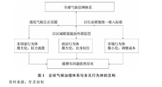 从国际气候制度的架构和效力来看,现有的两种设计思路——自上而下和自下而上,具有自愿性、非惩罚性的共同特征,无法规避“搭便车”行为,总体呈现出低效率、非合作状态。因此,全球气候善治的关键节点在于解决“搭便车”和碳泄漏问题。