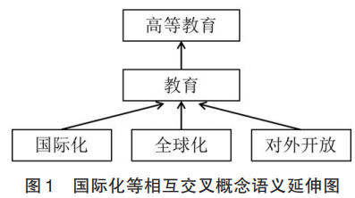 当我们探讨高等教育国际化是如何实现其工具价值时,首先必须对相应的概念作出阐释与界定。当前国际化、全球化、对外开放等相互交叉的概念逐次渗透到教育、高等教育领域,其概念延伸关系如图1所示。