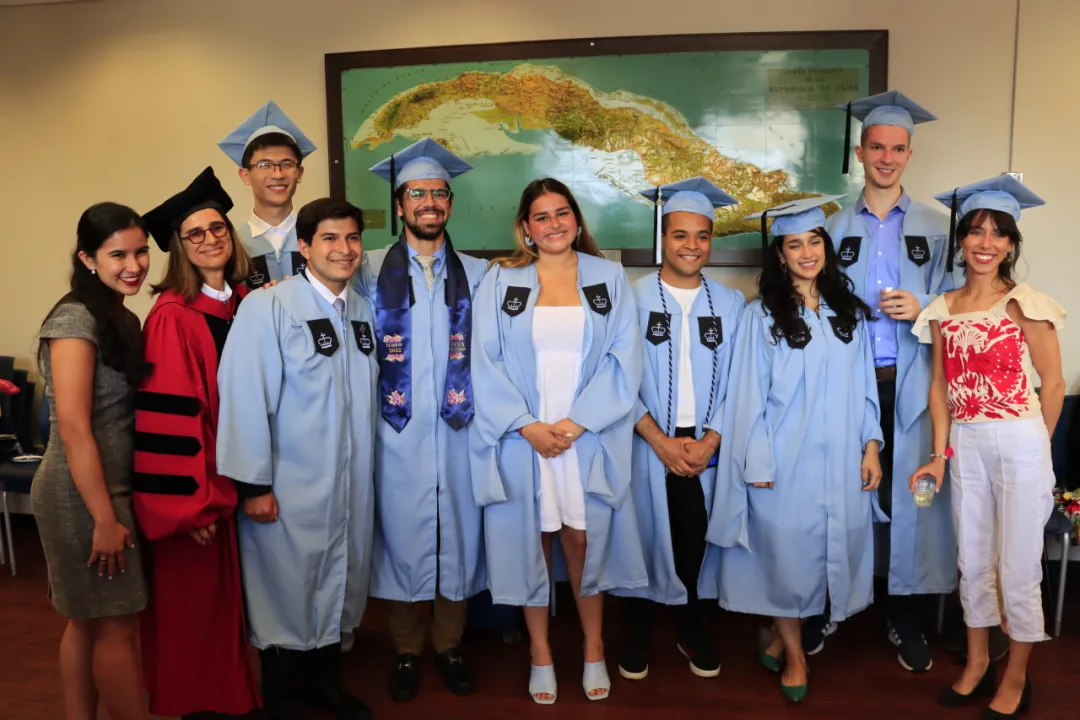王大鹏(左三)在哥伦比亚大学硕士毕业时与同学合影留念